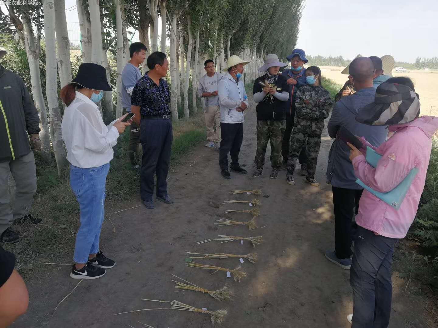 6月16日,新疆自治区种业发展中心组织2020年南疆冬小麦新品种生产试验参试单位人员20余人到新疆小麦育种家泽普基地,对本年度参加自治区小麦生产试验的新品系进行田间勘验。新疆自治区种业发展中心品审科科长赵素琴首先对田间勘验的要求作了说明。随后,各参试单位对参加2020年生产试验的10个品种及2个对照品种进行田间数据的采集和记录,了解各品种的田间表现,为各品种在南疆地区的推广示范提供参考依据。田间勘验主要测定各品种的农艺性状,包括参试材料的株高、穗长、小穗数、不孕小穗数、穗粒数和亩收获穗数,同时结合千粒重,计算各品种的产量,为小麦新品种的审定提供数据支撑。(粮作所 方辉)