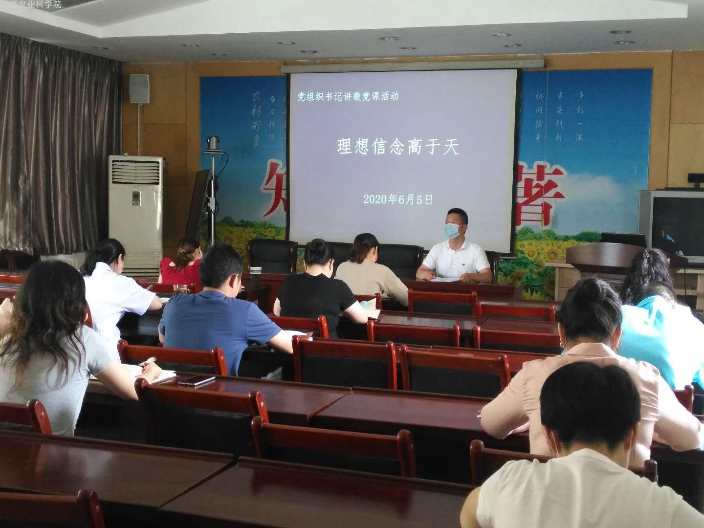 6月5日下午,微生物所党支部书记刘新君以“理想信念高于天”为题讲授微党课,21名党员参加活动。