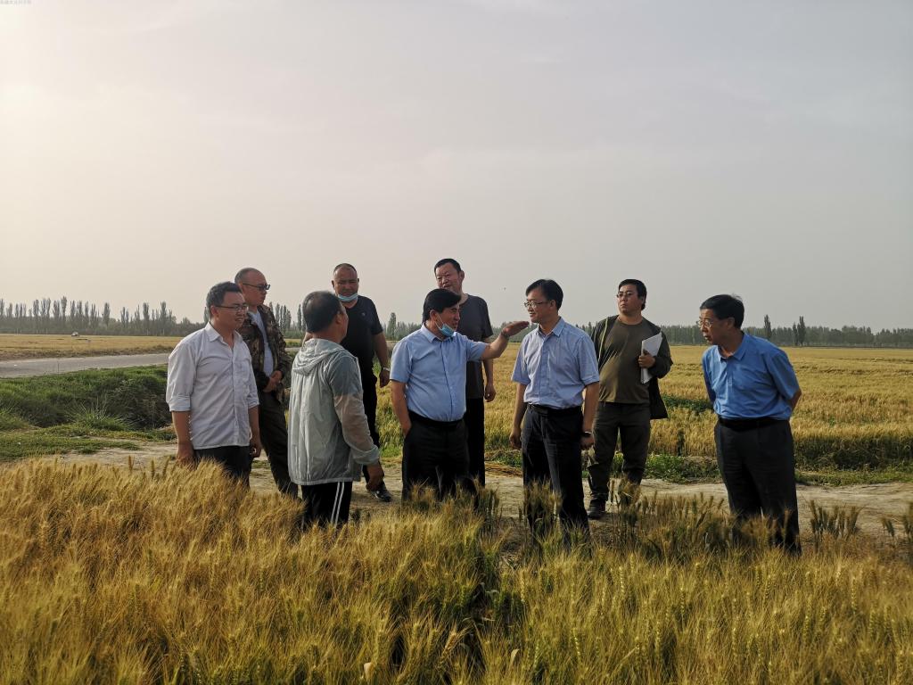 6月2日下午,自治区农业农村厅科教处处长阿迪力·巴斯提、泽普县副县长申运峰一行来到我院新疆小麦育种家泽普基地调研指导工作。