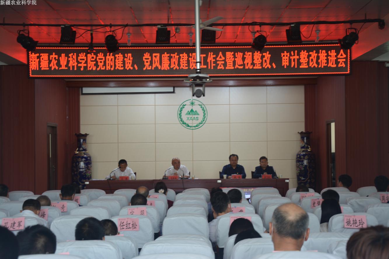 5月13日下午,我院召开党的建设、党风廉政建设工作会议暨巡视整改、审计整改推进会。院党委委员、副院长(厅长级)刘俊浩、戴健、赵德提·阿不都哈德尔,院长助理陆宴辉出席会议。会议采取视频会议形式召开,院领导、机关干部、研究所(中心)主要领导,农经信息所、农机化所、成果转化中心、离退休职工服务管理中心等单位职工代表110余人在院机关六楼会议室参加会议,其余各单位及场站职工210余人在分会场参会。院党委委员、纪委书记丛健主持会议。
