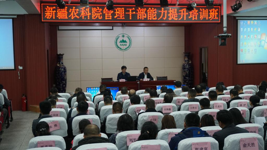 为进一步提升我院干部管理能力,着力加强服务“三农”工作的整体水平,11月11日—15日,我院举办管理干部能力提升培训班。培训班以习近平新时代中国特色社会主义思想为指导,推进科研人才队伍建设、促进处级干部能力提升为目标,安排了12次专题讲座。农业农村部管理干部学院党委书记向朝阳一行4人赴我院参加培训班开班仪式。院属各单位、机关各处室和各试验场站134人参加了培训。院党委委员、纪委书记丛健主持开班仪式并全程主持培训课程。