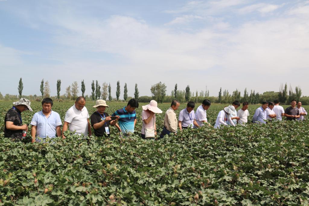 27日,与会领导、专家在农一师十二团机采棉高产示范田观摩交流。大家纷纷表示,要坚定信心,凝聚力量,以高度的责任感和使命感,投身新疆棉花产业技术创新,为推动新疆乃至全国棉花产业发展做出贡献。(经作所 李金枫 张黎)