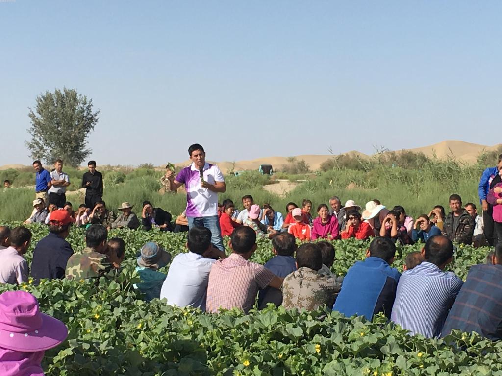 8月24日,我院专家服务队来到大漠腹地民丰县安迪尔乡,针对晚甜瓜膨瓜期到成熟期的关键技术要点和注意事项,为当地瓜民开展技术培训指导,现场答疑解惑,深受当地群众欢迎。现场培训选址繁荣村村民雪合热提江·布尔罕江的瓜地里,300多名瓜农现场听取专家们示范讲解。