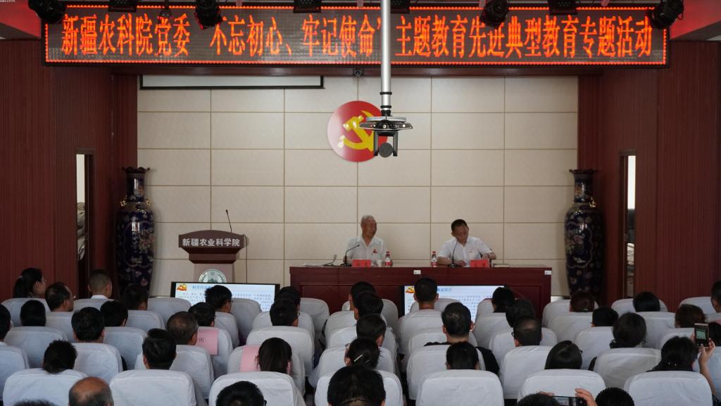 根据院党委开展“不忘初心、牢记使命”主题教育活动“七个一”专题教育具体安排,8月30日下午,我院开展先进典型教育专题活动,旨在通过学习先进人物忠党爱国、无私奉献、攻坚克难、勇往直前的家国情怀、高尚品德和奋斗精神,在全院树立标杆典范,激励广大党员干部职工“不忘初心、牢记使命”,提振干事创业的精气神,凝聚勇攀科技高峰、全心服务“三农”的强大力量,在全院上下营造崇尚先进、学习先进、争当先进、赶超先进的浓厚氛围。全院干部职工450人参加活动,其中主会场230人,11个分会场220人。活动由院党委委员、纪委书记丛健主持。