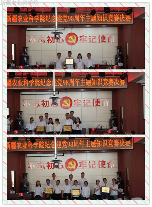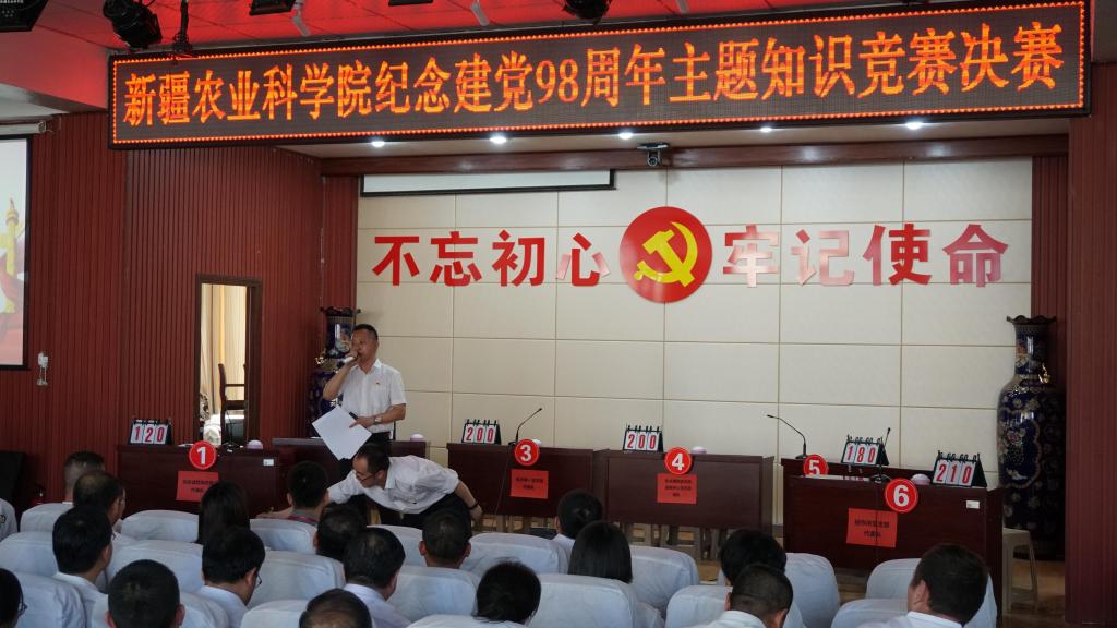 宣誓完毕,纪念建党98周年主题知识竞赛决赛拉开序幕。参加决赛的6支基层党组织代表队是从预赛中的18支参赛队伍中产生的,队员们个个准备充分、信心满满。比赛场上面对个人必答题、小组必答题、抢答题、风险题四个环节的赛题,他们反应敏捷、从容作答,比分交替上升,场上掌声不断。经过激烈角逐,经作所党支部代表队喜获一等奖;机关第一党支部代表队等5支代表队分获二、三等奖。