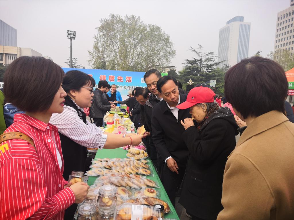 4月13日,由北京市农业农村局与农业部食物与营养发展研究所主办的“2019年首届马铃薯主食化科普宣传活动”在北京举办,活动主题为“均衡营养、健康生活”。中国农科院党组书记陈萌山出席活动并致辞。全国20家马铃薯主食企业及加工所参加活动。我院加工所马铃薯主食团队及协作企业新疆葡萄树有限责任公司携带马铃薯馕、列巴、面包、饼干、蛋糕等12种产品参加活动。