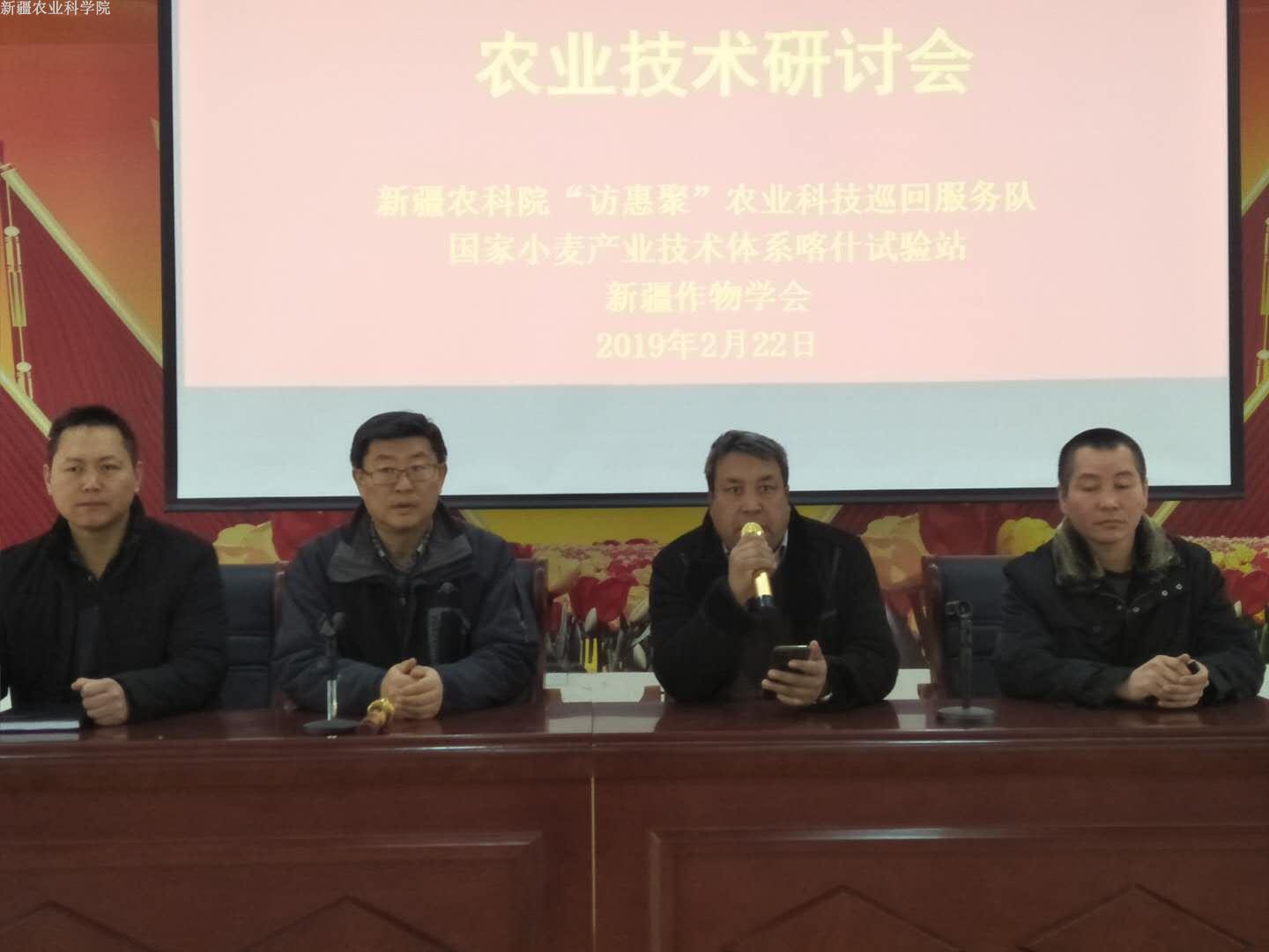 巡回服务队来到喀什地区莎车县、泽普县及克州阿克陶县,与自治区下派深度贫困村第一书记、“访惠聚”工作队、乡镇领导、扶贫专干及村干部、科技示范户一起集中举办农业技术研讨会,交流研讨小麦、玉米、巴旦木高产栽培技术及种植业结构调整、庭院经济发展存在的问题及解决对策。此次巡回服务总结前几年工作经验,归纳当地农业生产存在的焦点问题,举办多媒体讲座,对第一书记、“访惠聚”工作队员、村干部、技术骨干等提出的问题进行一一解答讨论,助力春耕生产。同时,为提高农民依靠自身脱贫的积极性,巡回服务队广泛开展“扶智扶志”宣讲。哈萨克族专家赛力汗·赛博士讲述自己学习六种语言,刻苦奋斗成为小麦专家的成长经历;买买提·依明副研究员从“访惠聚”以来南疆农村的深刻变化着手,用一个个鲜活的故事拨动贫困户的心弦。技术培训和“扶智扶志”宣讲得到了驻村干部和农民群众的高度赞赏。