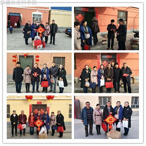 春节期间,院机关党委和工会以“民族团结一家亲”活动为契机,赴喀什地区库木西力克乡和罕南力克镇的12个村,走访慰问了我院“访惠聚”驻村工作队队员和深度贫困村第一书记及助理,为奋战在维稳和扶贫工作第一线的职工送去我院各族职工的亲切问候和节日祝福。院工会为他们送去中国结、干果、糖果、熟食等年货。院机关党委送去慰问金。院工会还走访慰问了计划生育失独、伤残家庭3户6人,为每个家庭送去慰问金,与他们恳切交谈,了解他们的心愿和诉求,向他们传递党和政府的关心关怀,鼓励他们乐观、坚强地生活。