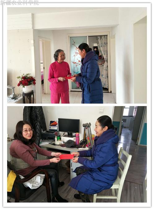 在退休干部、老专家、劳模及因公殉职职工家中,慰问组一行详细询问他们的身体和生活状况,对他们长期以来为自治区农业科技事业发展做出的贡献表示感谢,并祝福他们身体健康,晚年生活幸福美满。在慰问“访惠聚”驻村队员家属、深度贫困村第一书记和助理家属、挂职干部以及支教老师家属时,慰问组向他们致以节日的问候和祝福,对他们对“访惠聚”工作给予的理解和支持、为实现新疆社会稳定和长治久安总目标做出的贡献表示诚挚的感谢。慰问组特意走访了我院在职困难职工21人,为每位职工送去慰问金,与他们恳切交谈,了解他们的困难和诉求,同时,还鼓励他们勇敢面对挫折,努力克服困难,创造美好生活。