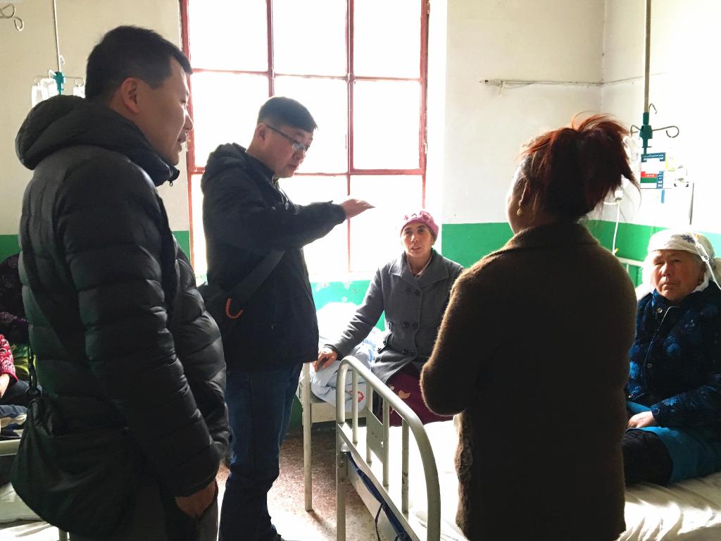 在去亲戚阿娜尔古丽·奥布力家时,结亲组却吃了“闭门羹”,连去了两次,家里都是大门紧锁,一打听才知道阿娜尔古丽生病住进了乡卫生院。大家马上与阿娜尔古丽打通了电话,问清楚病房后,拎上牛奶、鸡蛋前去看望。阿娜尔古丽一直身体不太好,不知道这次是什么情况,大家心急如焚,到了医院以后,听到只是上呼吸道感染时,大家才松了一口气。一见到亲戚们,阿娜尔古丽就着急要回家给大家做饭吃,大家连连摆手,让她安心养病,还详细的询问是否需要陪护,孩子是否需要人照顾,家里有没有活要干,阿娜尔古丽感动地说:“谢谢你们,没有再比你们更贴心的亲人了。”