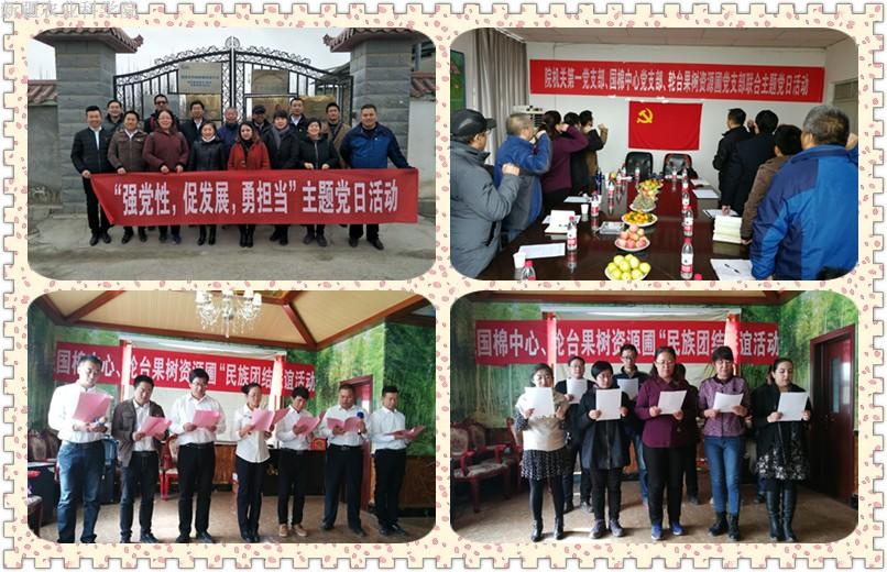 11月15日,院机关第一党支部、棉花中心党支部与轮台果树资源圃党支部联合开展“强党性、促发展、勇担当”主题党日暨民族团结联谊活动。三个支部的20余名在职和退休职工党员参加活动。轮台果树资源圃副主任樊国全主持活动。
