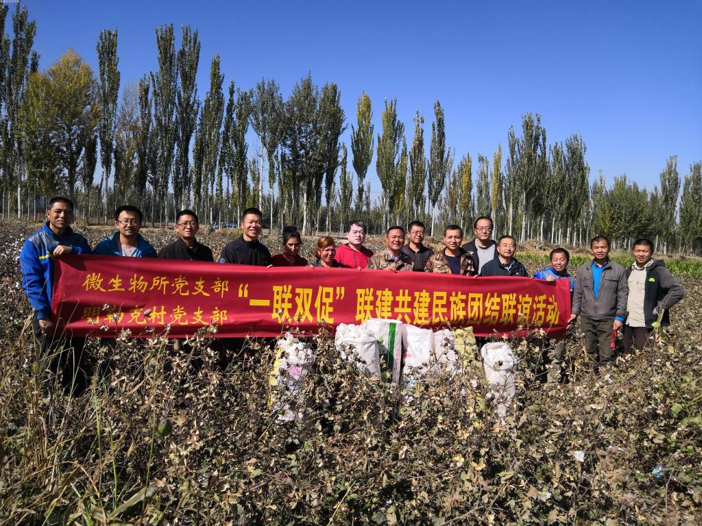 微生物所党支部书记刘新君、明勒克村“第一书记”张涛分别介绍了党建工作情况,交流学习了开展党建工作的经验做法,共同签订了《基层党组织联建共建协议书》,微生物所党员代表和驻村干部、支教老师代表进行了“多对一”结对子,刘新君讲了“旗帜鲜明讲政治,学好立身必修课”专题党课。双方还共同开展了金秋助农摘棉花民族团结联谊等活动。