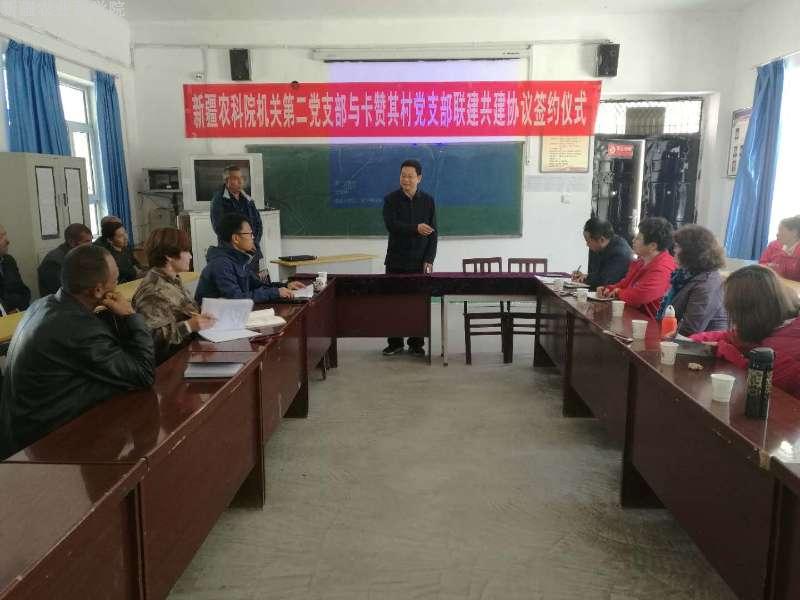 10月13日,院机关第二党支部与疏勒县罕南力克镇卡赞其村党支部开展联建共建主题党日活动。我院院长陈彤、机关第二党支部书记孙利辉、我院派驻罕南力克镇深度贫困村卡赞其村第一书记徐万里,以及院机关第二党支部、卡赞其村全体党员近50人参加活动。