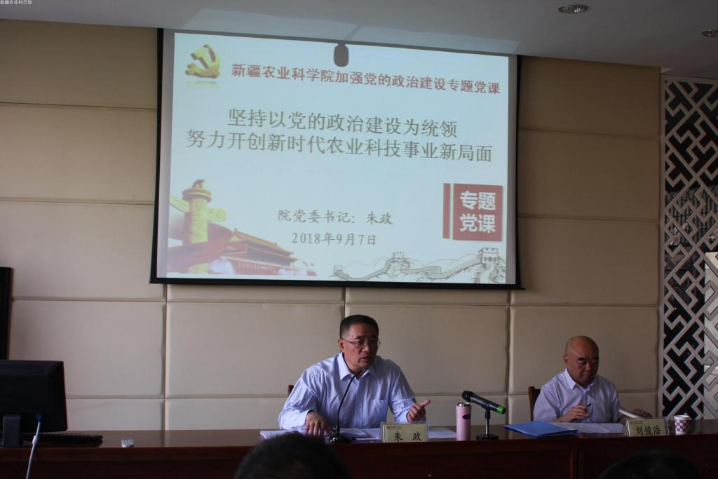 按照自治区党委和自治区直属机关工委有关要求,我院全面开展领导干部讲“党的政治建设”专题党课活动。9月7日,院党委书记朱政率先开讲,作《坚持以党的政治建设为统领,努力开创新时代农业科技事业新局面》专题党课。院党委委员、副院长(正厅级)刘俊浩,院党委委员、副院长康威,全院处级干部和院属各基层党组织支委、党小组长94人聆听了党课。刘俊浩主持党课活动。