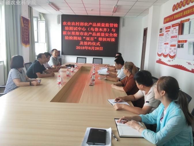 8月28日,农业农村部农产品质量监管检验测试中心(乌鲁木齐)与霍尔果斯市农产品质量安全检验检测站“双百”对接帮扶签约仪式在霍尔果斯市农牧兽医局举行。李进和霍尔果斯市农牧兽医局副局长赵和平分别代表双方在协议书上签字。李进表示,将在日常农产品质量安全检验检测、农产品生产、品种推广及质量把控、农产品检测人员培训学习等方面与霍尔果斯市建立长期业务合作。同时,还将利用其部级农产品质检机构在人才、技术、资源等方面的优势,通过组织实地考察、观摩学习、培训交流等方式,帮助霍尔果斯市农产品检验检测站提高检测人员的业务素质和操作技能;推进农检站规范管理、科学运行,改善检测实验室环境和条件,优化实验室布局和仪器设备配置使用;帮助建立与农产品质量安全检验检测工作相适应的质量管理体系,加快机构考核和资质认定“双认证”工作的推进。