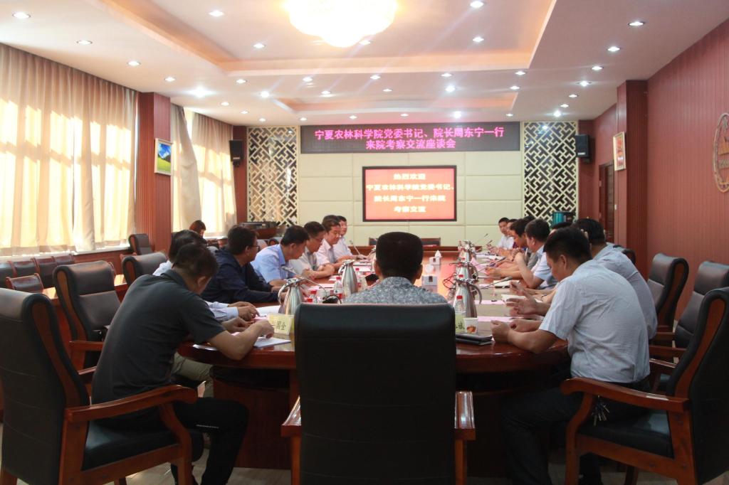 8月14日,宁夏农林科学院党委书记、院长周东宁一行7人来我院调研并座谈。我院院长陈彤、副院长杜伟,科管处、办公室、国际交流处、粮作所、园艺所、吐鲁番所、加工所、综合试验场等相关单位的领导、专家14人参加座谈会。陈彤院长主持会议。