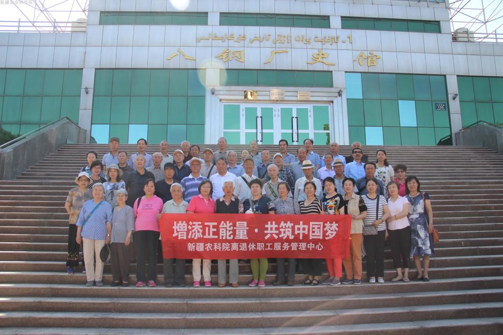 为庆祝建党97周年,庆祝改革开放40周年,聚焦新疆工作总目标,深化拓展“增添正能量、共筑中国梦”主题活动,离退休服管中心党总支在“七一”前夕,组织全院各族离退休党员参观了乌鲁木齐市爱国主义教育和民族团结教育基地——宝钢集团八一钢铁股份有限责任公司(以下简称八钢),全院120余名老党员参加活动,年龄最大的96岁。