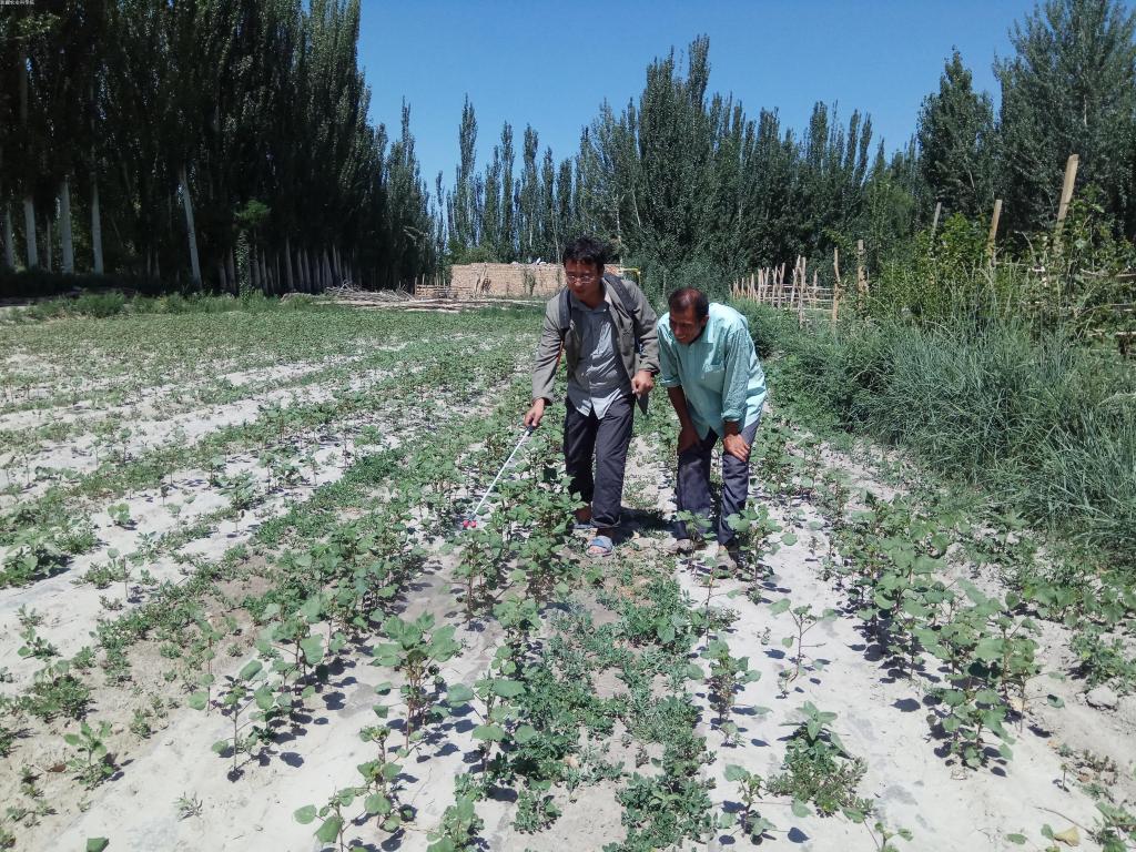 结亲干部还在工作队指导下,检查亲戚们种植的棉花和庭院蔬菜病虫害情况,在麦收的间隙,自己购买了杀虫剂,背起喷雾器为亲戚示范病虫害识别和药剂防治方法,并督促他们时刻关注病虫发展变化情况,科学用药,争取有个好的收成。同志们还和亲戚们一起整枝打岔,整理庭院经济。