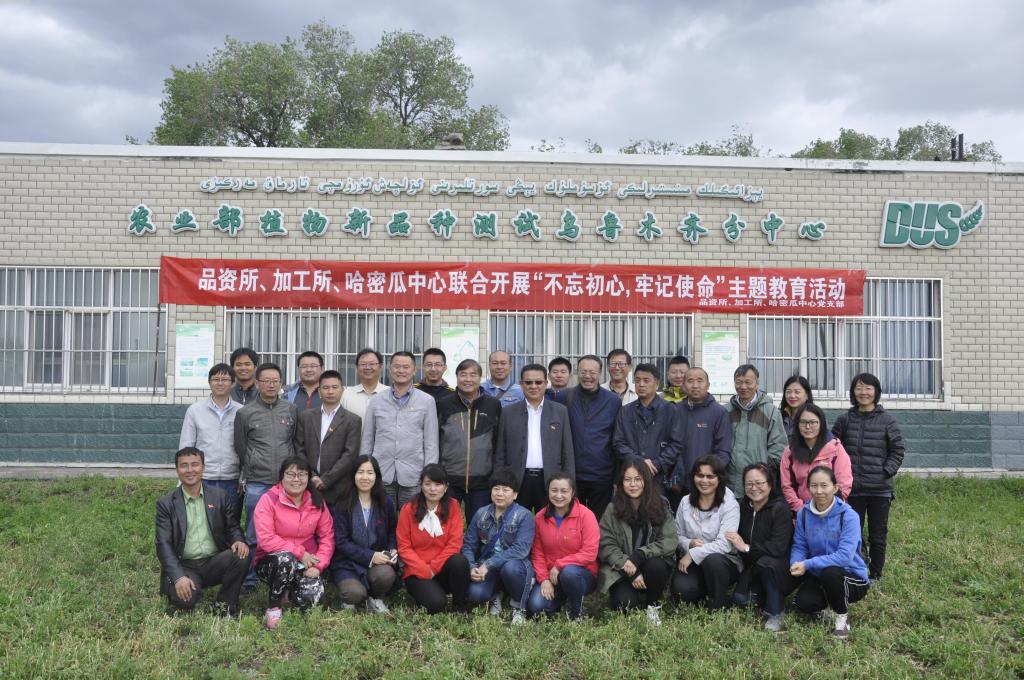 为认真开展“不忘初心,牢记使命”主题教育,铭记“为中国人民谋幸福,为中华民族谋复兴”的“初心”和“使命”,5月24日,我院品资所、加工所、哈密瓜中心三个党支部在品资所植物新品种DUS测试中心基地联合开展“不忘初心,牢记使命”主题党日暨民族团结联谊活动。三个党支部全体党员、入党积极分子、职工代表近40人参加活动。品资所副所长宋羽主持活动。