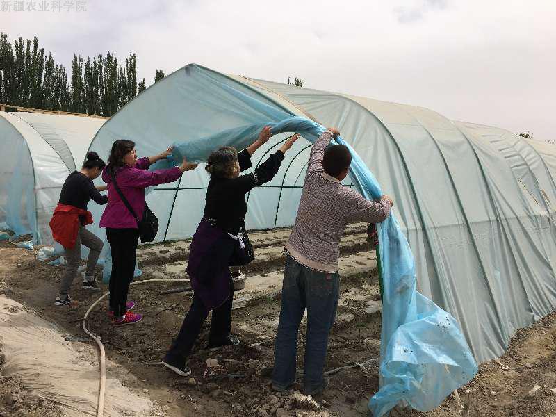 走访阿卜力克木·阿伍提家时,发现他家蔬菜大棚在午后艳阳高照时没有及时通风,大棚里的温度已达40-50度,菜苗蔫头耷脑。在高蜀齐的带领下,大家把一块块大棚塑料布掀开,不一会大棚的温度就降了下来。阿卜力克木·阿伍提不好意思的说:“今天有点忙,就忘了给大棚通风,没想到你们城里人种地一点也不差,比我们考虑的还周到。”