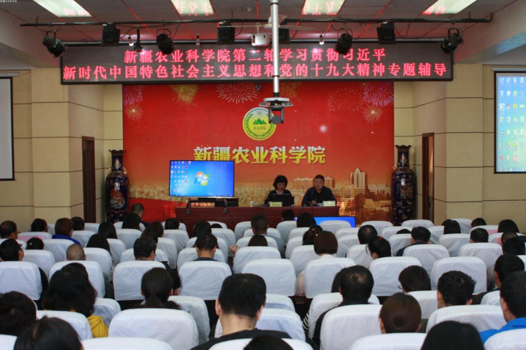 4月28日,特邀自治区党校哲学部孙笑冰教授来我院作《坚持“五位一体”总体布局和“四个全面”战略布局》专题讲座,这也是我院将“学习贯彻习近平新时代中国特色社会主义思想和党的十九大精神”持续引向深入高潮开展的专题辅导活动之一。院党委书记朱政、院长陈彤聆听了讲座。机关各处室、各研究所(中心)、场站处级以上领导干部、党员职工代表230余人在主会场聆听讲座,农机所、综合试验场等单位同时开设视频分会场,做到学习全覆盖。组织人事处处长肖旭主持报告会。