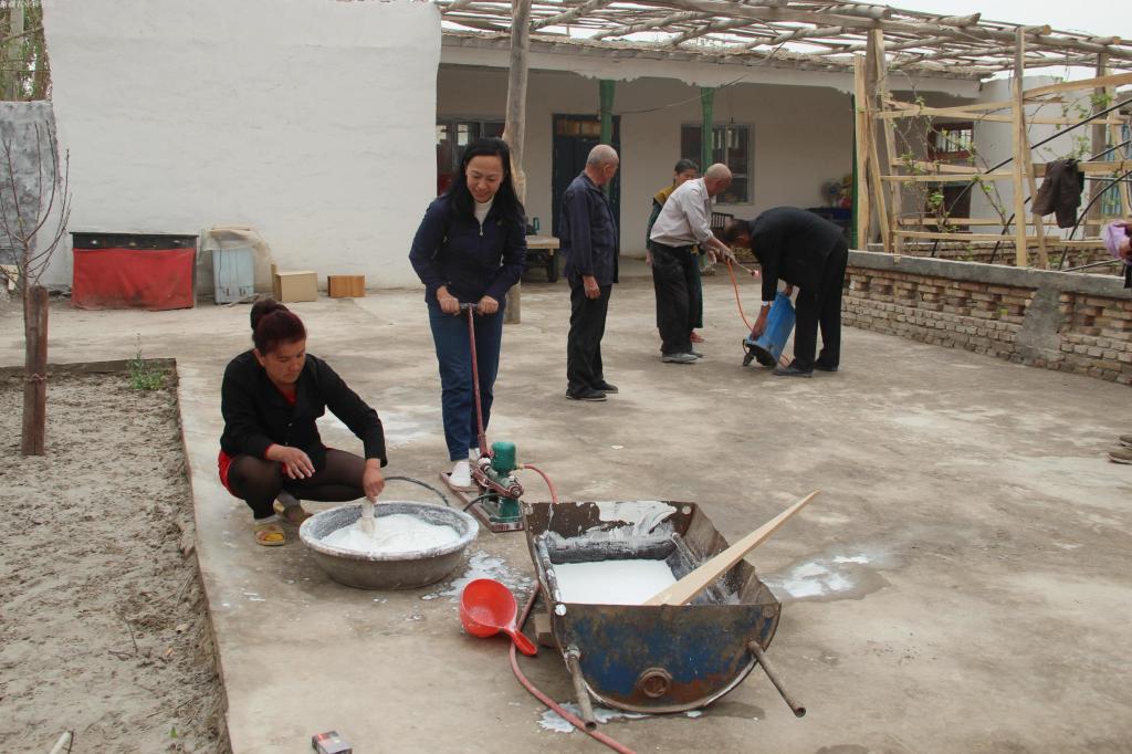 4月15日一大早,在村民艾海提·买买提家的小院子里,工作队员和结亲干部们有说有笑,忙作一团。他们有的帮主人把被褥搭到铁丝上晾晒、拍打;有的将地毯铺在院子里除尘、洗刷。“跳蚤最喜欢藏在土炕、地毯、墙角等潮湿阴暗的地方,而土炕和地毯我们天天都在用,家人也是天天都被跳蚤咬,在工作队的号召下,我把家里用了一辈子的三个土炕都拆掉了,现在我们睡觉有了木床,吃饭有了桌子,我觉得自己也越来越像城里人了。”艾海提·买买提边说边伸出了大拇指。