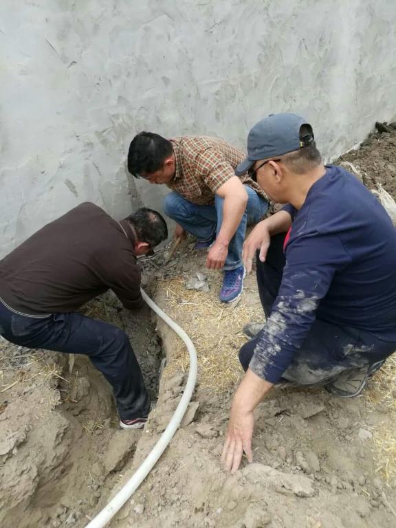 为使修建厕所工程扎实推进,各小组联合做战,领导干部带头示范,结亲干部各显神通。院办公室主任孙利辉亲戚家有年迈老人和残疾儿子,无劳力,无能力,就连最基本生活用水都没通到家里,要修厕所必须开沟挖管道、掏渗坑,工程量特别大,万事开头难,结亲干部不畏困难,做好设计方案就开工,大家边干边总结,越干越有劲,通过一天紧张劳动,修建多年的安居富民房中终于通上了自来水,有了卫生间,亲戚感动的拉着结亲干部的手一个劲地说:“热合买提,热合买提,感谢民族团结一家亲,感谢亲人”。粮作所于明了解了亲戚伊斯马伊力家的基本情况后,发现卫生间的修建有问题,建议将原计划作为卫生间的房间火墙位置改为门,并在后墙位置开一小窗通风透光。梁晓玲老师贫困户亲戚家厕所改造工程量巨大,需要挖管沟、阴井,得知这一情况后,粮作所各组成员前往齐心协助挖渗坑。“厕所革命”改变的不只是生活环境,更是现代文明的生活方式。看到一个个崭新的厕所修建而成,亲戚们脸上幸福笑容越来越多,虽然很忙碌很辛苦,但大家很欣慰很开心。