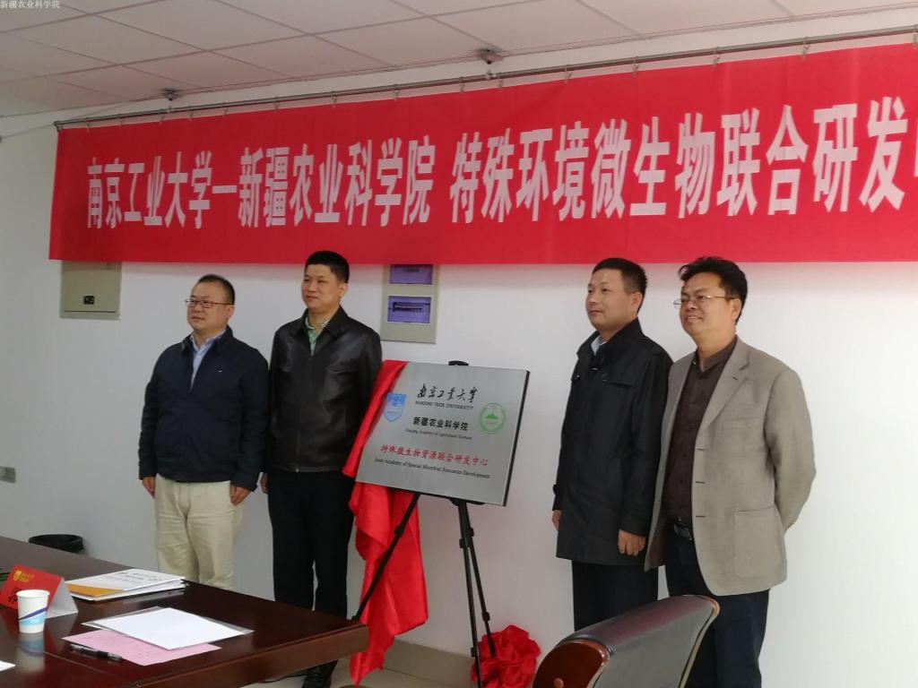 南京工业大学科学研究部处长周治代表南京工业大学对微生物所科研人员的到来表示热烈欢迎,对联合中心的成立表示祝贺。他表示,为了践行十九大乡村振兴发展战略,江苏省成立了新农村战略研究联盟,南京工业大学作为副理事长单位积极协调科技资源,参与并助力农村产业发展。南京工业大学药学院院长黄和回顾了与微生物所在耐辐射微生物资源领域的前期合作,提出微生物资源不仅是工农业发展的创新源泉,也是留给子孙后代的宝贵财富,军人保卫国家守土有责,挖掘和保卫战略性资源则是当代科学家义不容辞的责任和义务;该联合中心的建立不仅为新疆科技发展助力,更是发达地区科技工作者践行“一带一路”战略的使命。