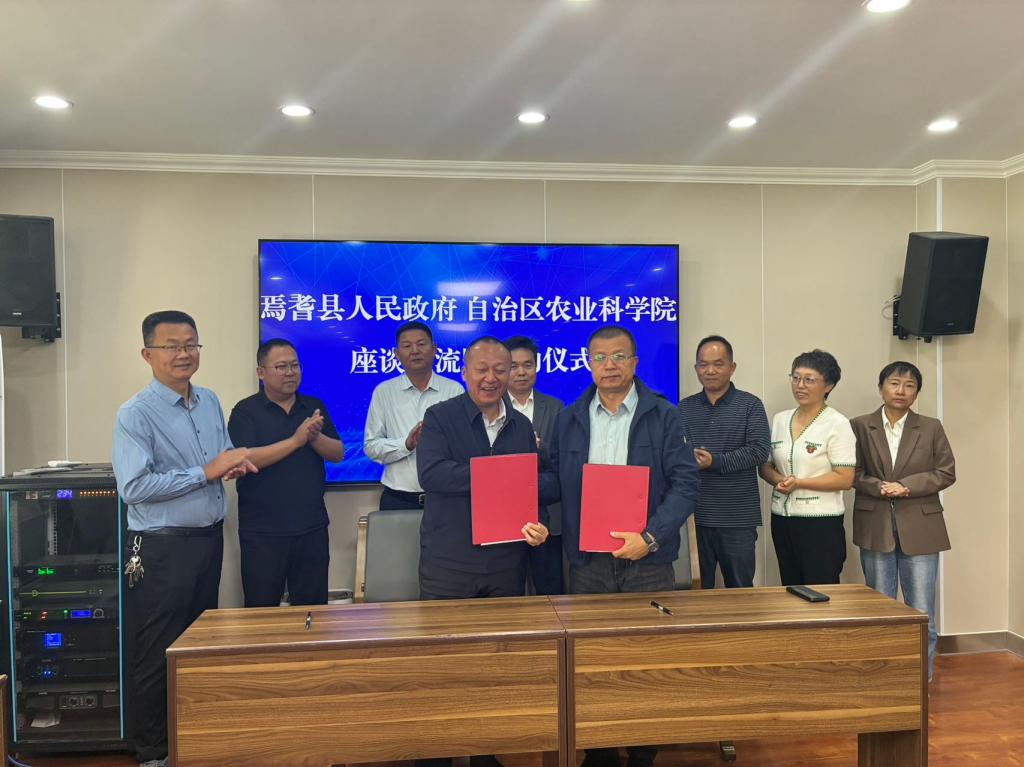9月5日,焉耆回族自治县委副书记、人民政府县长马雁斌到自治区jc聚彩网座谈交流,并签订共建“新疆巴州焉耆县富硒产业研究院”合作协议。自治区jc聚彩网党组成员、副院长阿里甫·艾尔西主持会议。