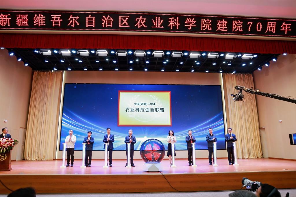 本次活动安排为“旱区农业新疆研究院”和“中国(新疆)—中亚农业科技创新联盟”揭牌。“旱区农业新疆研究院”由自治区农科院与西北农林科技大学共建,聚焦干旱半干旱地区农业水资源高效利用、抗逆作物品种选育等关键技术研发,致力打造开放协作的旱区农业创新平台。“中国(新疆)—中亚农业科技创新联盟”由自治区农科院牵头,联合国内外70余家高校、科研机构及企业共同组建,助力推动“一带一路”农业科技协同合作与创新发展。