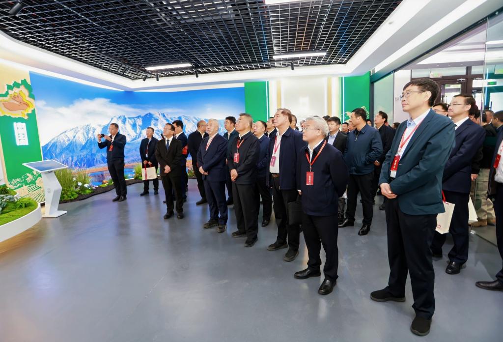 与会嘉宾一行参观了自治区农科院科技陈列馆。馆内通过具有历史意义的实物、图文展板、数字影像等,系统呈现了70年来在科技创新、人才引育、成果转化、服务支撑、科技合作、党建引领等方面的成就。