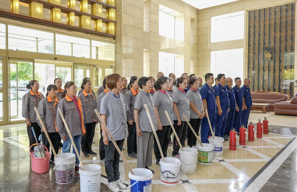 活动现场,消防安全岗位技能竞赛通过火警处置、消防设施设备使用等环节,检验参赛选手在模拟火灾环境下的应急反应能力和自救互救能力;保洁卫生岗位技能竞赛通过每名保洁员深度清洁原交流馆一间房屋门窗、暖气片、地面、悬挂窗帘以及应知应会问答等方式,全方位比拼清扫速度、清洁质量和操作规范,公平、公正检验参赛选手的专业技能水平。经过紧张激烈的角逐,共有9名参赛选手脱颖而出。