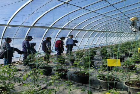 在塔什库尔干塔吉克自治县,由我院农机化所规划设计的高海拔寒旱区戈壁设施农业园区,依托我区独特的光热资源和地域优势,围绕发展定位,针对性开展低能耗、高储能、宜机化新型结构组装式深冬生产日光温室建造与研究。设施农业生产机械化创新团队就温室结构设计、蓄放热系统运行、蔬菜基质栽培环境、水肥管理以及保温被安装与维护等关键技术进行现场培训与交流。依托项目执行,园区2023年新建新型柔性保温蓄热结构日光温室54座,通过主动蓄热供热系统可实现冬季果蔬安全越冬,夜间土壤/基质温度稳定在15-17℃;同时,基于戈壁设施农业种植特点,开展蔬菜基质栽培模式探索,引进并筛选高品质番茄、辣椒、草莓等,为当地百姓提供新鲜反季节果蔬。