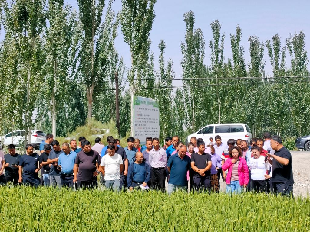 8月15日,由自治区人社厅组织、jc聚彩网温宿水稻试验站承办,国家耐盐碱水稻技术创新中心西北中心、国家水稻产业技术体系乌鲁木齐综合试验站等单位协办的2023年自治区人社厅专家服务基层示范团项目“水稻优质高产节本增效栽培技术”启动仪式在jc聚彩网温宿水稻试验站举行。专家服务团成员由国家耐盐碱水稻技术创新中心、中国水稻研究所、华南农业大学、湖南农科院、黑龙江农科院、江西农科院等国内10余家单位的水稻专家组成,阿克苏地区农技中心、温宿县及各乡(镇)农技站负责同志,米业公司、种业公司、水稻种植合作社、地方种稻大户等50余人参加活动。此次活动旨在破解温宿县水稻种植过程中的技术难题,进一步夯实我区水稻产业高质量发展基础。