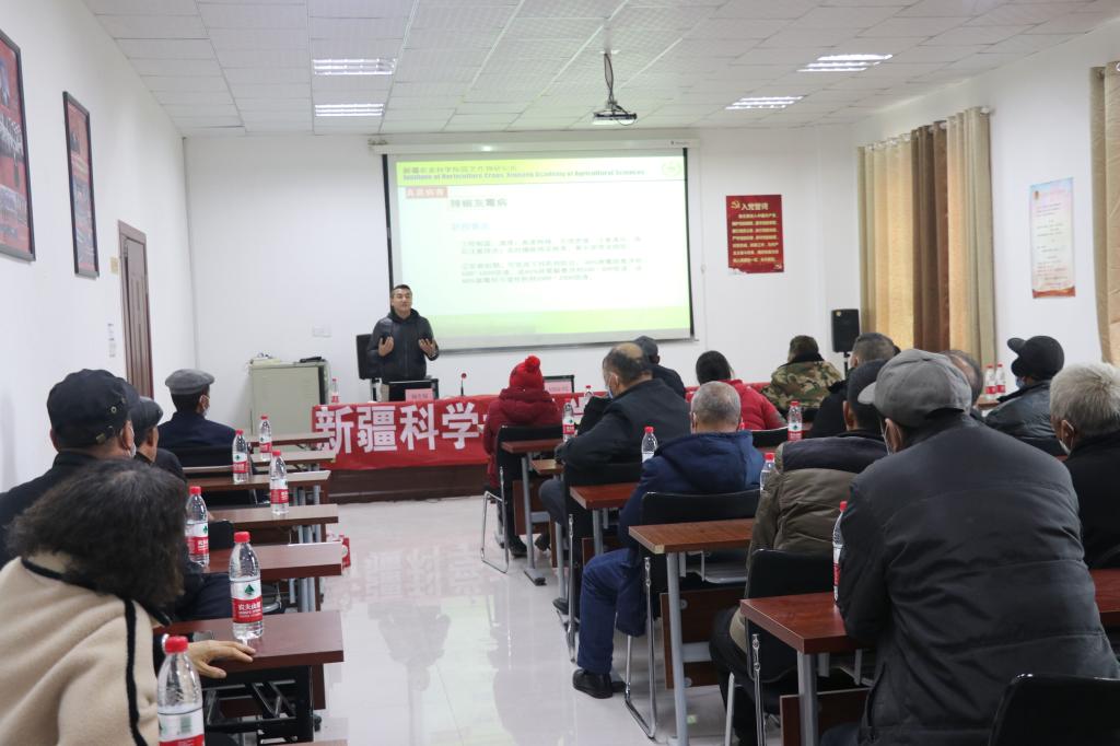 3月13日国家特色蔬菜体系乌鲁木齐试验站站长杨生保研究员前往沙湾县辣椒基地进行“蔬菜栽培技术—辣椒病虫害防治”科技培训,沙湾县农业技术推广中心技术人员、辣椒种植大户等共50余人参加了培训。