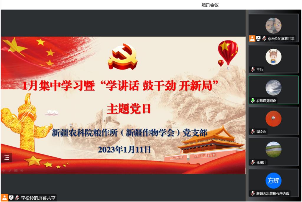 活动中,大家共同学习了《为实现党的二十大确定的目标任务而团结奋斗》《国家主席习近平发表二〇二三年新年贺词》等习近平总书记重要讲话,中央农村工作会议、中央经济工作会议、自治区党委十届六次、七次全会等会议精神。党员唐怀君以《深入学习贯彻党的二十大精神》为题讲授了微党课。泽普基地党小组组长丁银灯以《逆势“追光”,麦田里的守望者》为题,分享自己疫情期间坚守岗位一线的故事。