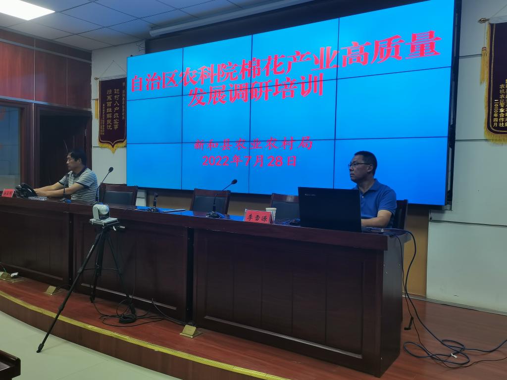 7月28日,我院经作所李雪源研究员带队,由经作所、植保所、土肥所、农机所7位育种、农机、水肥、植保专家组成的我院棉花高质量发展第三调研组,赴新河县开展棉花高质量发展调研及培训。阿克苏地区农技推广中心,库车、沙雅、新和农业管理部门人员、种植大户、合作社、种业公司等200余人参加活动。
