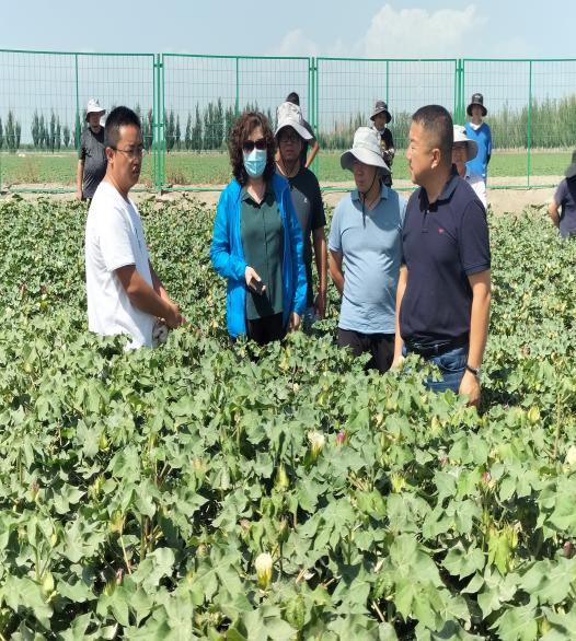 张胜一行首先参观了棉花试验田、优良品种繁殖示范田、病圃育种田、核心种质圃、旱池、盐池。详细了解了试验基地运行、源棉5号等系列新品种(系)特性及繁殖示范、项目研究进展、科企合作及成果转化等情况。随后还参观了高产优质高效机采棉品种源棉8号示范田。今年,李雪源团队与十六团、新疆金丰源种业有限公司签署了源棉8号良繁示范合作协议,在十六团7连繁殖示范源棉8号2000余亩,初步形成“科研院所+种业公司+连队+职工”的“产学研相结合、育繁推一体化、兵地融合”发展模式,加速新品种推广转化力度,助力棉花提质增效。(经作所 梁亚军)