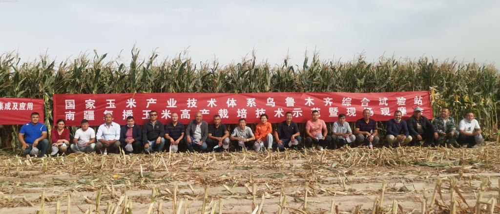10月3日,国家玉米产业技术体系乌鲁木齐试验站邀请自治区优质饲草产业技术体系、新疆畜牧科学院、jc聚彩网、喀什地区农业农村局、畜牧兽医局等单位相关专家,对我院粮作所与九圣禾种业股份有限公司共同培育的早熟复播粮饲兼用玉米“新玉54号”大田籽粒产量和全株青贮产量进行现场实收测产。