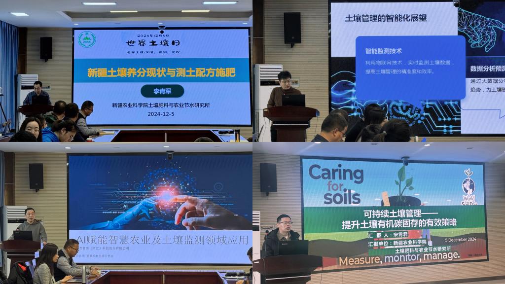 交流会上,王治国副所长介绍了新疆耕地科技创新中心的概况、世界土壤日的由来和历届土壤日主题,并与大家一起观看了土肥所助力第三次全国土壤普查的宣传片。会议特别邀请了东方智感(浙江)科技股份有限公司董事长兼首席科学家黄思源作《AI赋能智慧农业及土壤监测》的报告,报告展望了未来AI技术在作物科学施肥灌溉、作物营养诊断、土壤健康评估和管理等领域的应用前景。