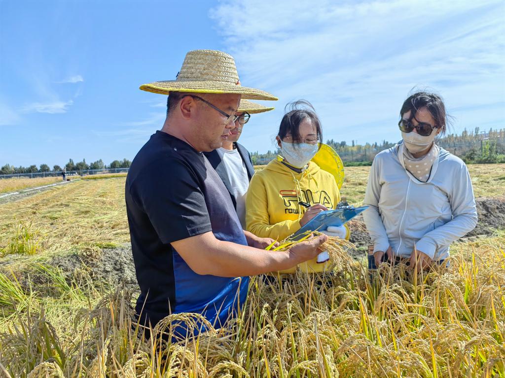 10月2日,由伊犁州农业技术推广总站、伊犁州农科所、察布查尔县种子管理站、兵团第四师农科所、兵团第四师68团农业发展中心等单位组成的专家组,对位于察布查尔锡伯自治县孙扎齐牛录镇的108亩水稻新技术高产示范田进行机割实收测产,经过称重、测定杂质、测定含水量,计算干谷产量等环节,专家最终确定,该示范田平均亩产达810公斤。该示范田是由我院水稻团队创建,种植品种为自育“新稻56号”,种植技术采用的是引进的水稻机插秧同步侧深施肥技术。