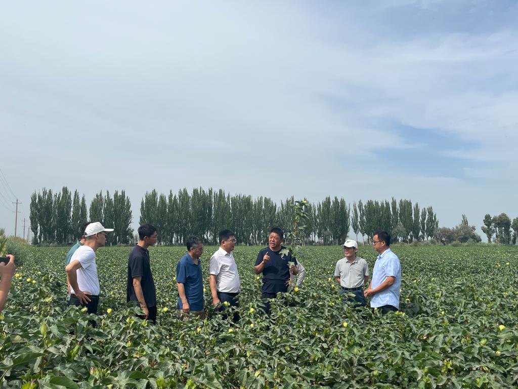 7月29日,中国农业大学深圳研究院常务副院长杨富裕教授带领考察组一行18人赴我院阿瓦提棉花育繁综合试验示范基地(以下简称基地)进行考察调研,阿克苏地区和阿瓦提县相关领导,我院经济作物研究所所长阿里甫•艾尔西等陪同调研。