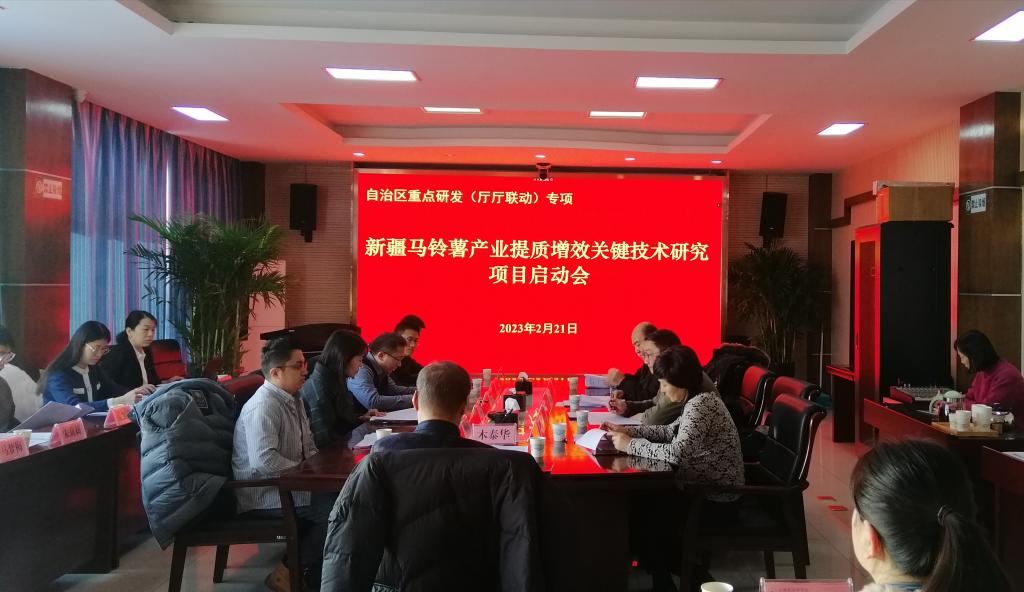 2月21日上午,由我院综合试验场主持的自治区重点研发(厅厅联动)项目“新疆马铃薯产业提质增效关键技术研究”启动暨实施方案研讨会顺利召开。自治区科学技术厅农村科技处、新疆科技战略研究院农村中心、项目特聘专家组成员、项目各课题组负责人等40余人参加会议。