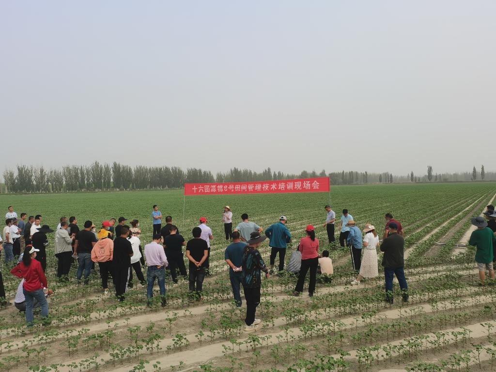 为做好源棉新13305、源棉8号棉田良种良法配套管理工作,5月25日,我院经作所组织专家,在阿拉尔16团6连、7连、14连棉花田间开展管理技术现场培训,实地了解源棉新13305、源棉8号生长发育状况。