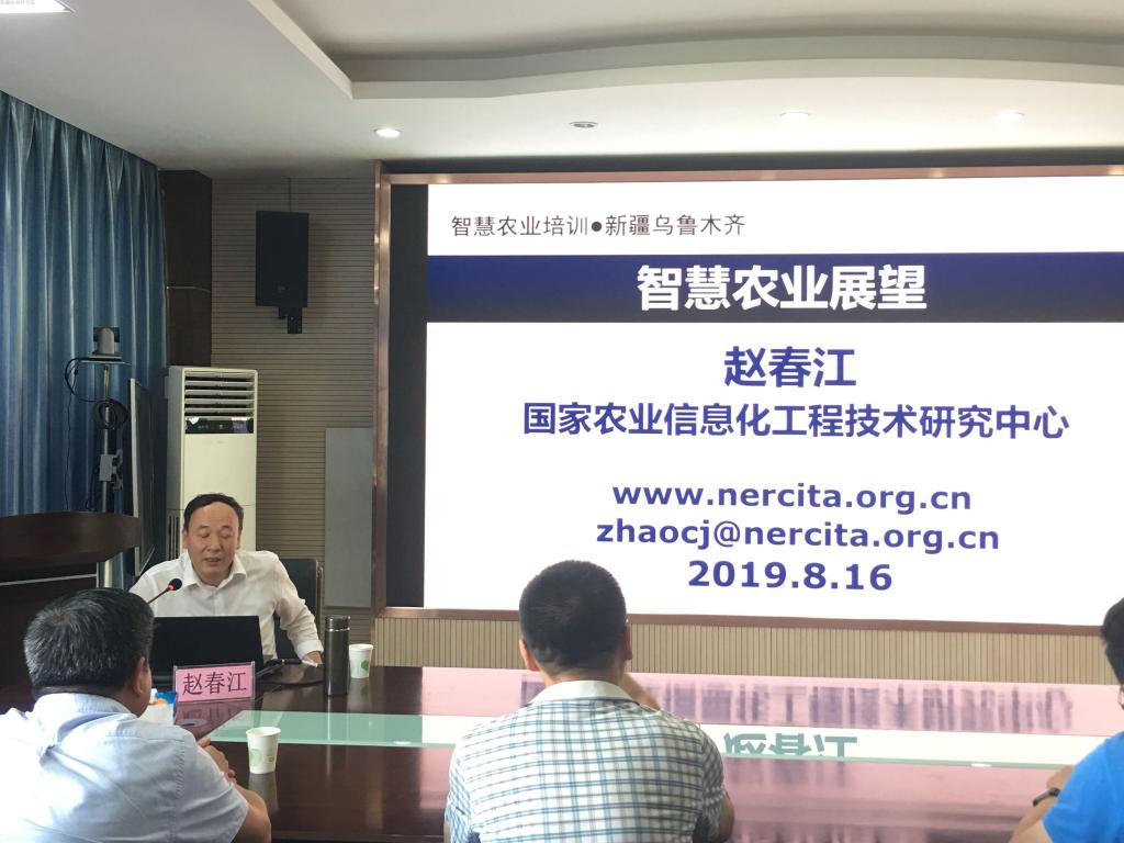 报告会上,赵春江院士结合自己的科研经历,贴近新疆农业生产实际,从大田智慧农业、设施智慧农业、智能加工车间、基于大数据的个性服务、农业大数据来源、聚合与挖掘、育种信息管理等方面详细讲述了智慧农业发展现状和前景。他还全面介绍了团队近年来在遥感导航、农机物联网、便携式田间信息采集设备、植物代谢生理指标信息获取设备、室内考种设备、无人机表型信息获取等方面取得的进展。他的报告与概念视频相结合,以生动活泼的讲述方式,将智慧农业、信息技术的复杂概念深入浅出地讲解出来,通俗易懂。赵春江院士表示目前我国智慧农业的研究和推广与发达国家相比尚有差距,在新疆发展智慧农业有巨大潜力。他鼓励在座的科研人员投入到农业遥感、物联网、大数据等农业信息技术研究领域,未来为我国智慧农业发展做出更多贡献,攻克更多难关。