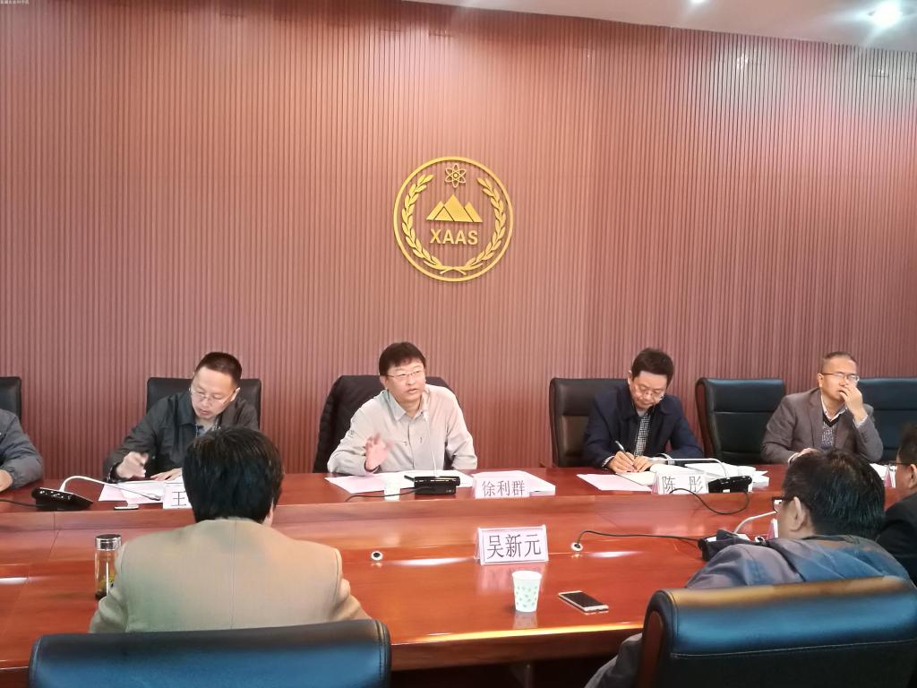 2018年10月17日上午, 农业农村部科教司产业技术处徐利群处长受邀前来我院,进行国家现代农业产业技术体系工作开展情况专题调研并召开座谈会。院长陈彤、自治区农业厅科教处唐胜军副处长以及全院现代农业产业技术体系岗位科学家、试验站站长和团队成员参加座谈会。会议由院科研管理处处长王成主持。