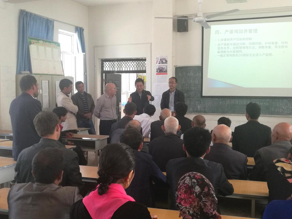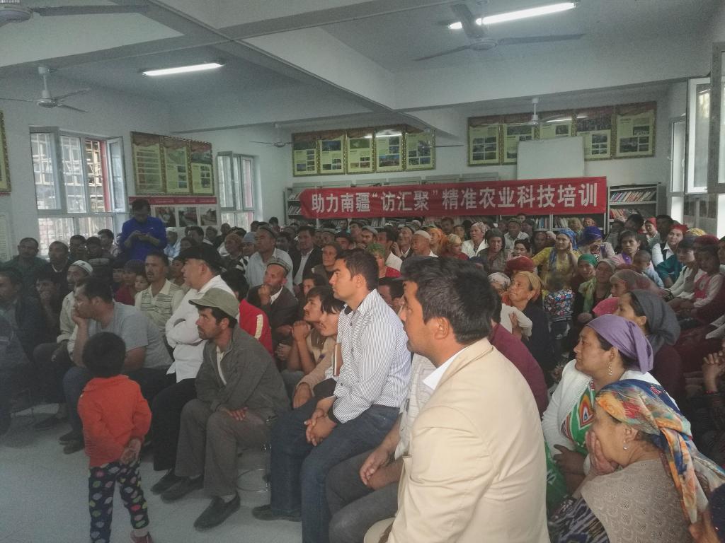 为了更好地推进科技“去极端化”宣传教育,落实自治区党委提出的“使驻村工作目标更加聚焦、任务更加务实、措施更加有力、成效更加明显”的要求,更有针对性协助驻村工作队扎实推进精准扶贫。2017年9月17日-20日,新疆农学会联合新疆农科院喀什疏勒县库木西力克乡驻村工作组、新疆畜牧兽医学会等9家单位,组织了包括自治区畜牧总站研究员迪力夏提.买买提、畜科院副研究员薛正芬,助理研究员阿依努尔.亚森在内的3名畜牧养殖专家,赴新疆农科院驻村工作点库木西力克乡4个村开展精准养殖业巡回技术培训。