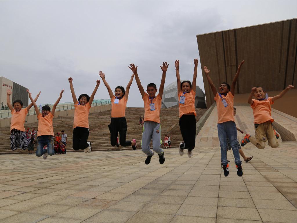23日,参加2016年全国航空航天模型锦标赛开幕式,尽管细雨如织,可世界航模比赛冠军杨军的精彩表演赛使孩子兴奋无比,在雨中仰望天空,欢呼雀跃。让孩子们最难忘还有克拉玛依科技馆,随着双语讲解员参观克拉玛依市规划馆,沙盘和大屏带领孩子们真实到克拉玛依的过去、现在和未来。参观了科学探索厅,儿童科技乐园里如梦似幻的互动魔镜墙、以假乱真的微缩模型、激光传声、棱镜分光等等,孩子们在游玩和动手操作中感受快乐,体验科技的奥妙。8个孩子以前都从未看过4D电影,在特效影院里带着好奇耍酷拍照,观影时纵情欢呼,《魔法汽水瓶》和《过山车》开启了孩子们的好奇之旅。