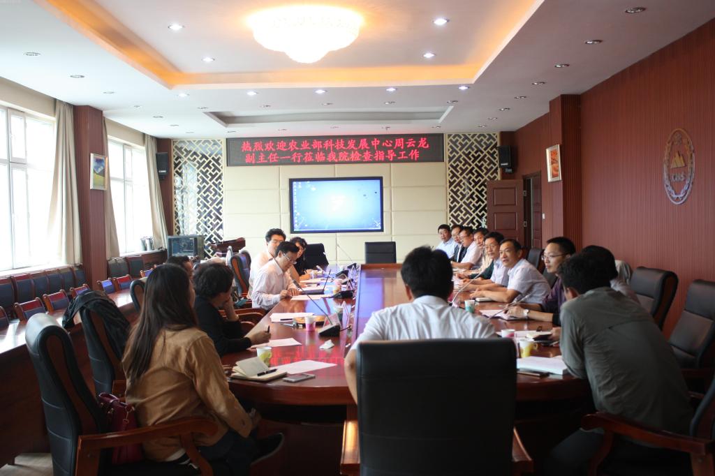 9月7日下午,农业部科技发展中心副主任周云龙、植物新品种保护处处长崔野韩、植物新品种测试处审查员堵苑苑一行来我院就植物新品种保护工作与种业发展相关问题、农业部植物新品种测试(乌鲁木齐)分中心的运行情况进行调研。