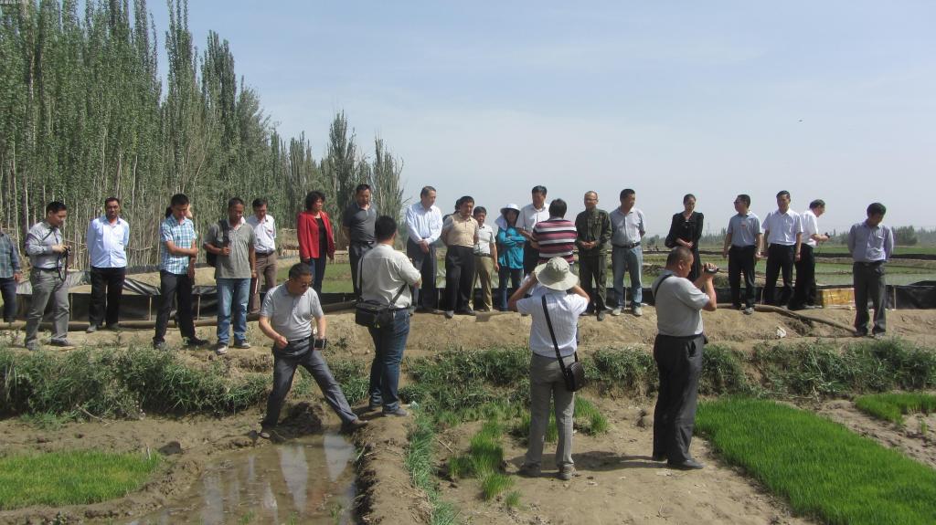 5月15日,我院墨玉试验站和核生所在和田墨玉县加罕巴格乡召开水稻机械穴直播及插秧现场会,中国工程院罗锡文院士,自治区科技厅驻墨玉县“访惠聚”工作中心组组长杨晓伟副厅长,和田地区农业局党组书记买买提明•阿不拉,和田地区科技局局长艾尼·苏里坦,墨玉县委常委邓小波,院核生所、墨玉试验站,和田地区及各县农业局、农技站等领导和农技人员,加罕巴格乡种稻农民共计100余人参加了现场会。